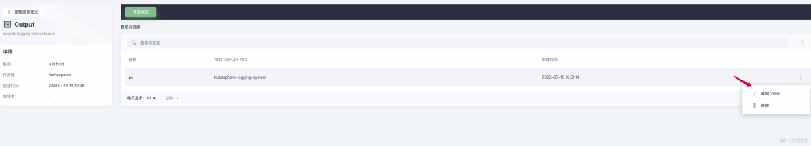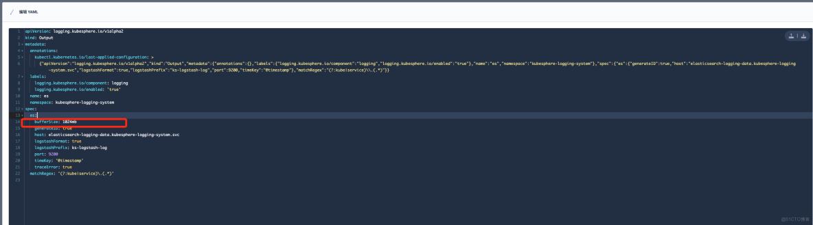在"定制资源定义(CRD)"->Output->"es" 修改 bufferSize 参数大小,可参考下图: