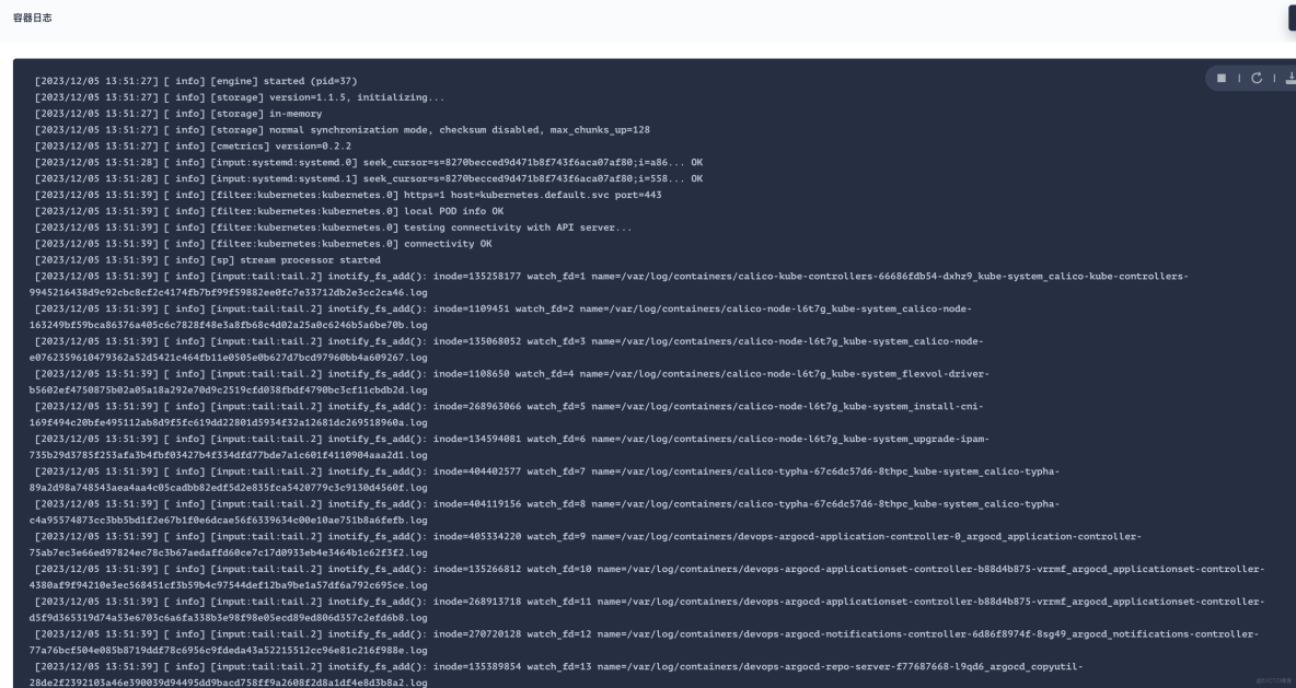 此时可以查看下 Fluent Bit 容器输出日志是否正常。