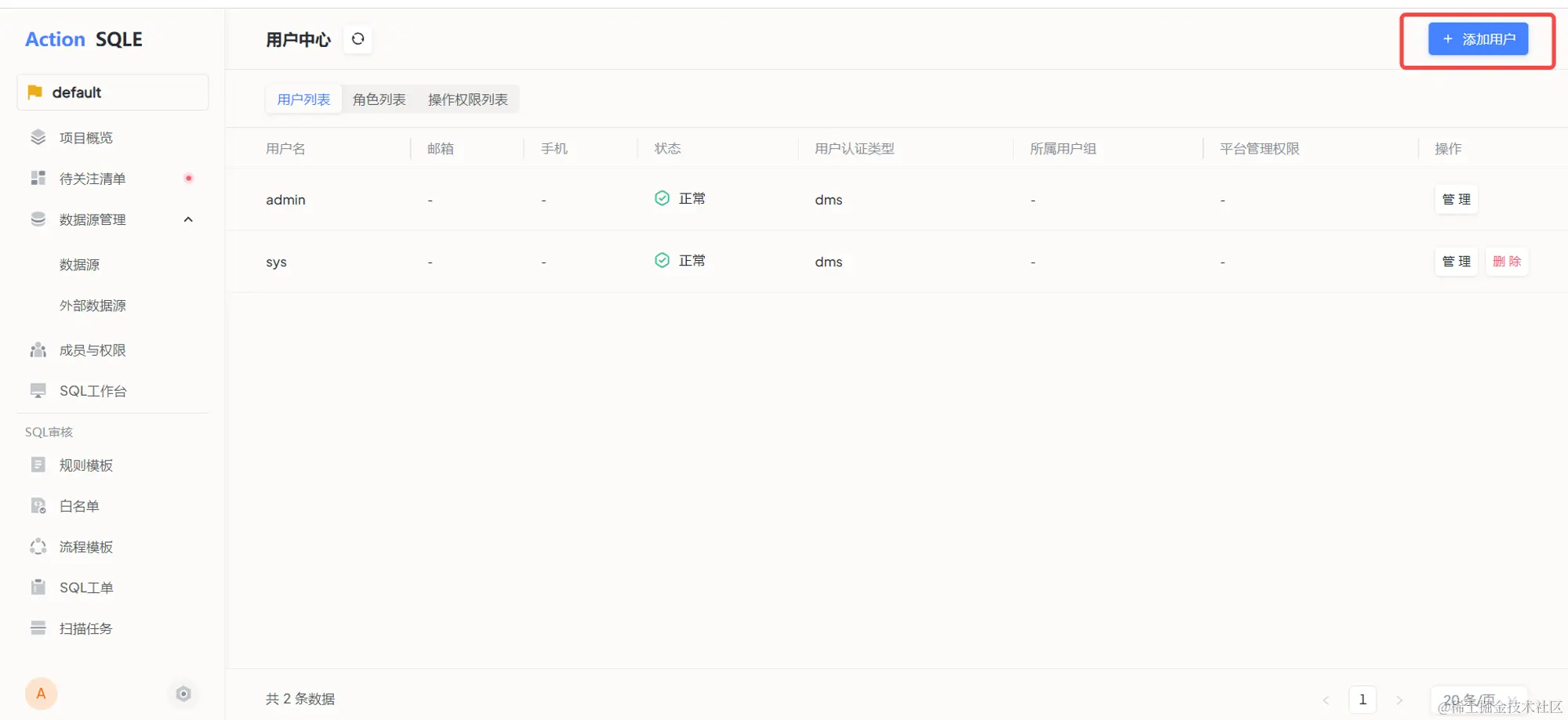 - 角色管理:SQLE 平台使用角色管理来实现操作权限组合,由管理员创建。