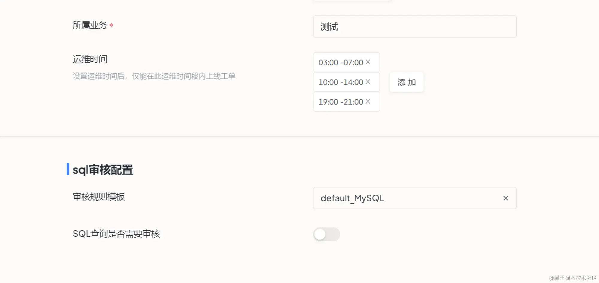 - SQL 审核配置:配置的是在 SQL 工作台上执行的操作,具体 SQL 工作台是什么咱们后面再说,这里就不展开了。咱们这节内容,选择将 SQL 查询是否需要审核 关闭就可以啦~~