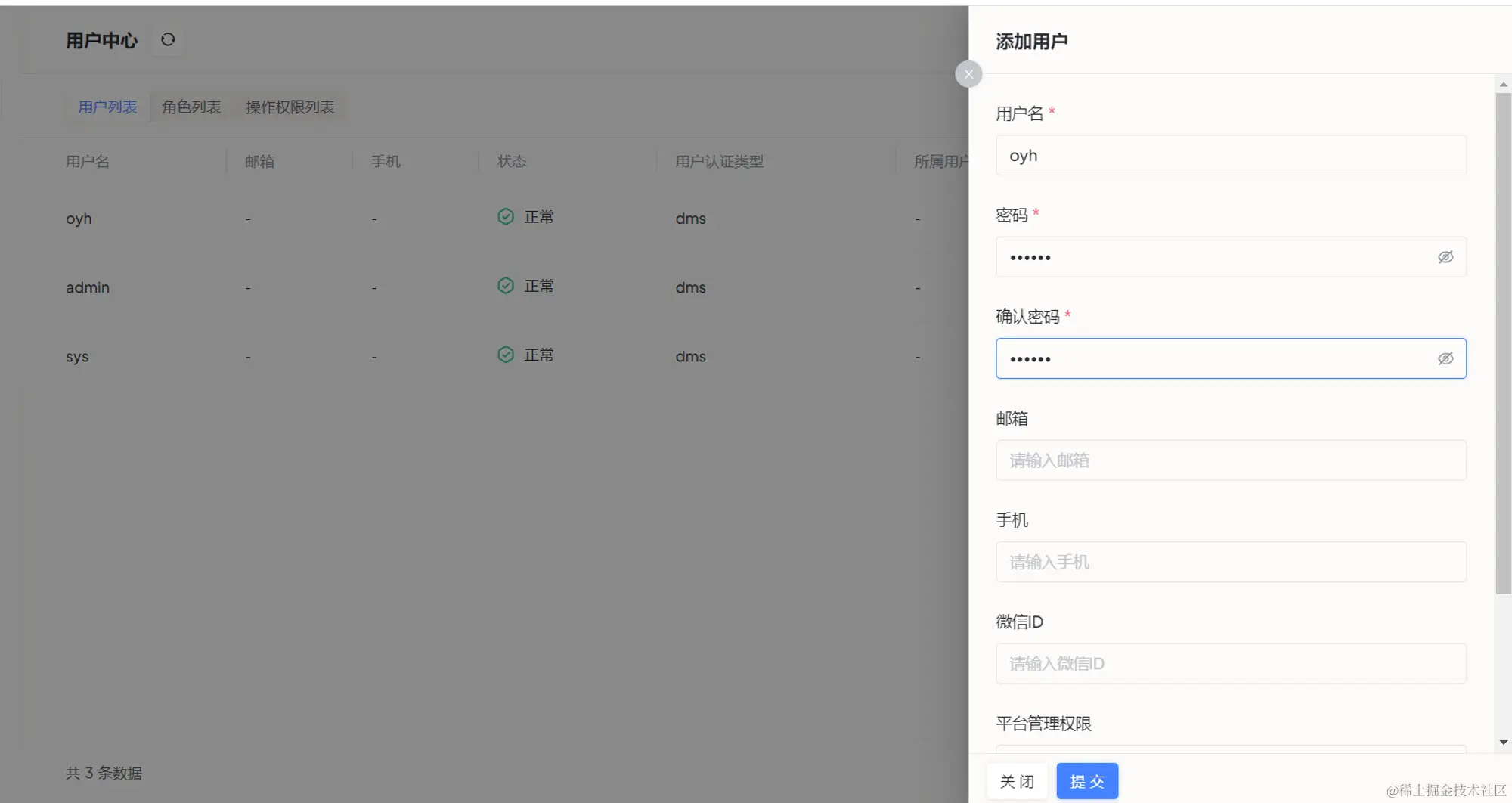 - 用户管理:指平台用户的管理,由管理员创建用户或编辑用户基本信息。