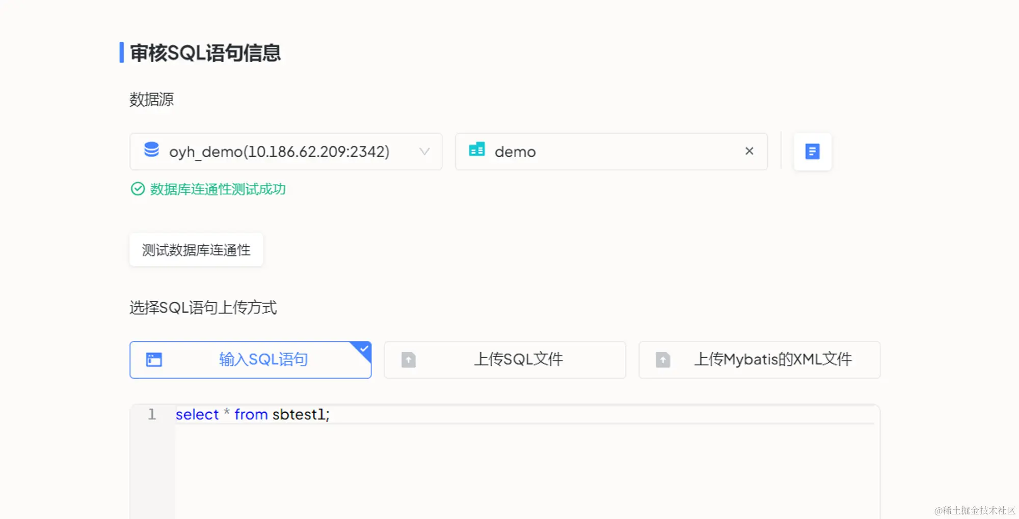 - 在线输入 SQL 语句:项目成员可在平台编辑器中直接输入 SQL;