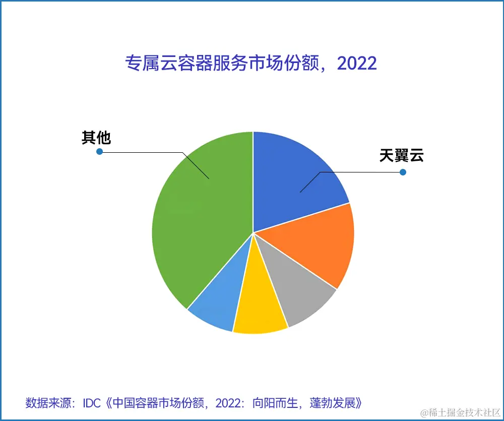 近日,IDC发布的《中国容器市场份额,2022:向阳而生,蓬勃发展》数据显示,天翼云在2022年专属云容器服务市场中高居榜首,实力领跑。