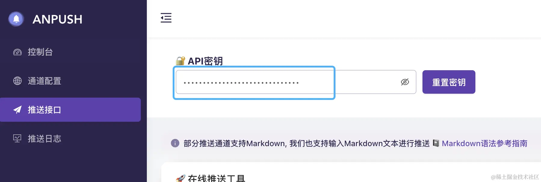 通知地址填:api.anpush.com/push/你的密钥
