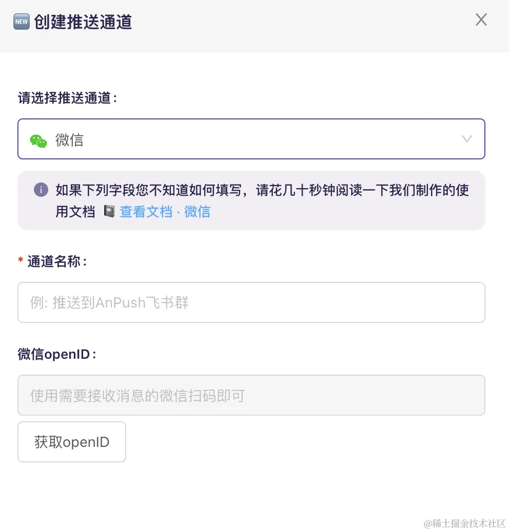 然后在anpush后台创建通道,我选择的是微信和飞书接收消息:(还支持QQ什么的。我没测试,大家自己玩玩)