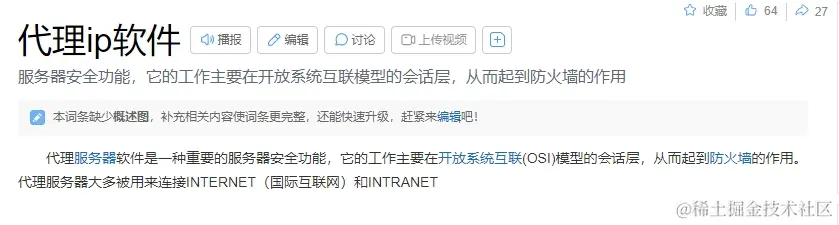 先来看百度百科给出的答案,代理IP是一种服务器软件,是一种重要的服务器安全功能。通俗来讲,代理IP会在你的计算机和目标网站之间进行中转,把你的请求发送给目标网站,并把目标网站的响应返回给你的计算机。