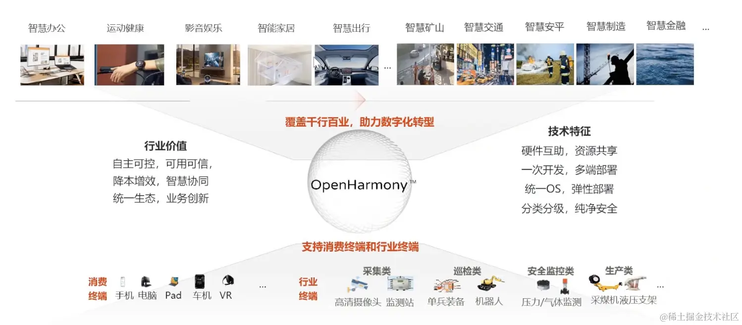 - OpenHarmony开源鸿蒙使能千行百业,帮助设备实现智慧化,助力企业数字化转型,真正实现了万物互联。