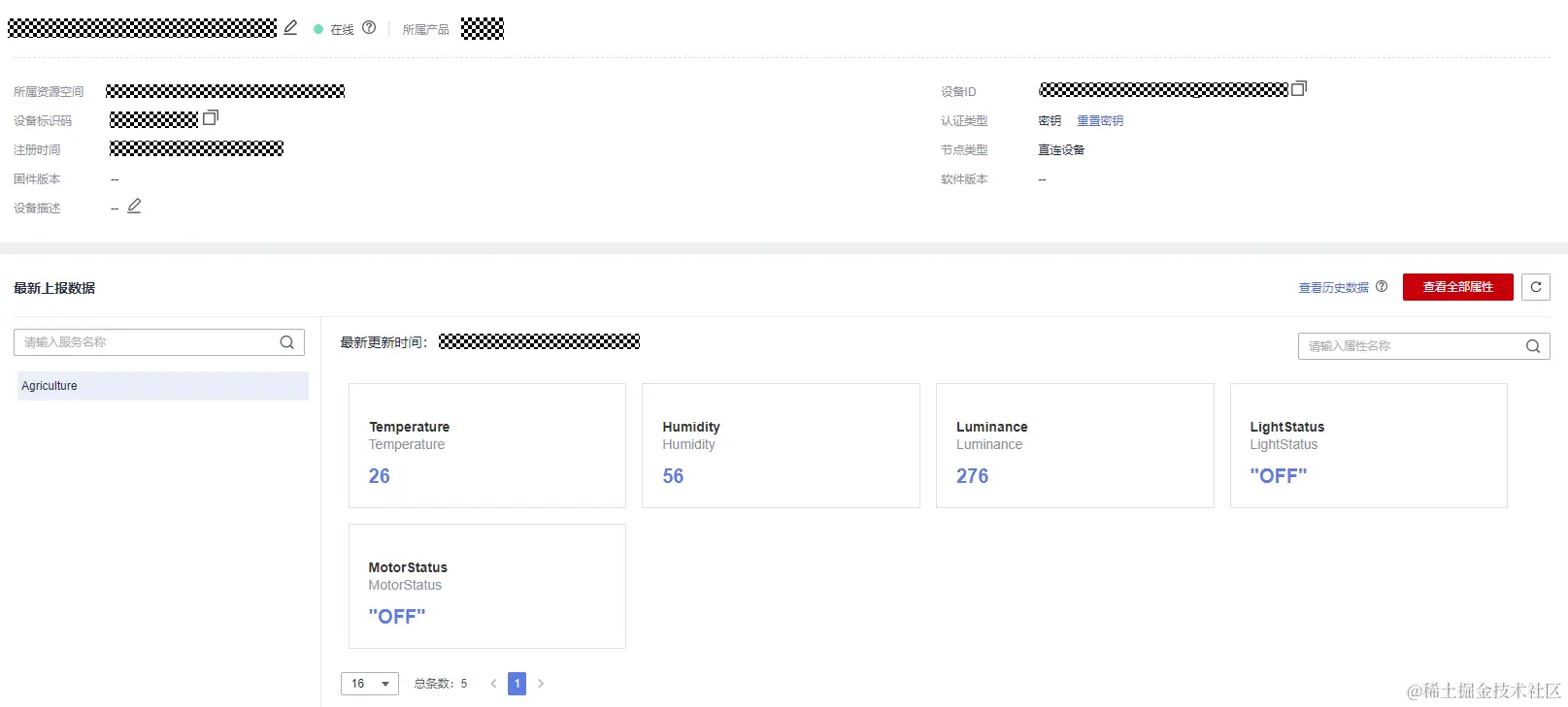 代码烧录到设备后重启设备(首次使用需重启两次,第一次烧录时可能需要配置一下内部信息),第二次设备重启之后可以正常对接华为云。