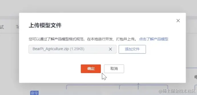 2、在产品详情“模型定义”页面,直接上传模型文件BearPi_Agriculture.zip。