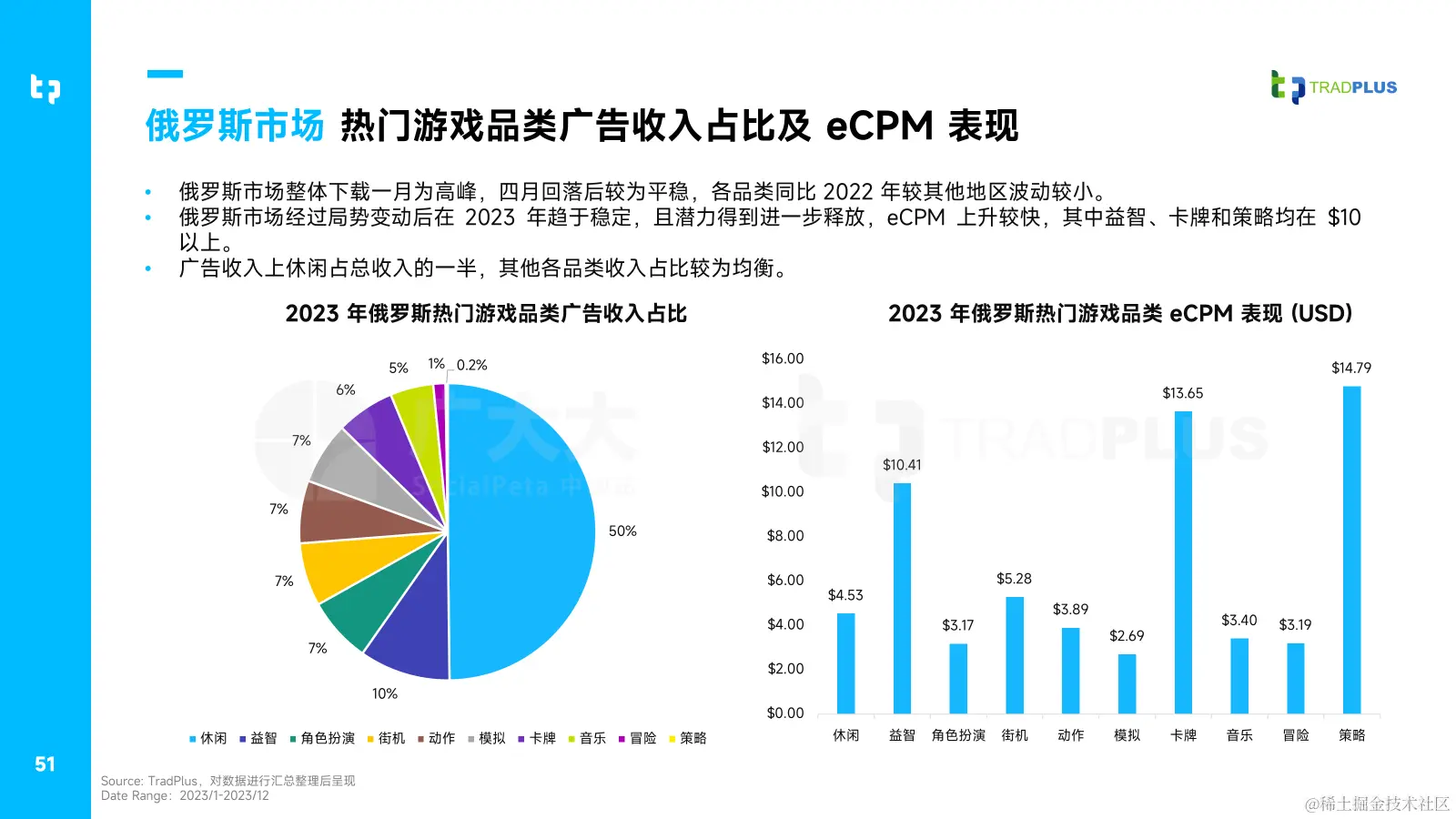 本次白皮书中TradPlus还对全球热门市场和游戏品类的变现表现做出了详细解读: