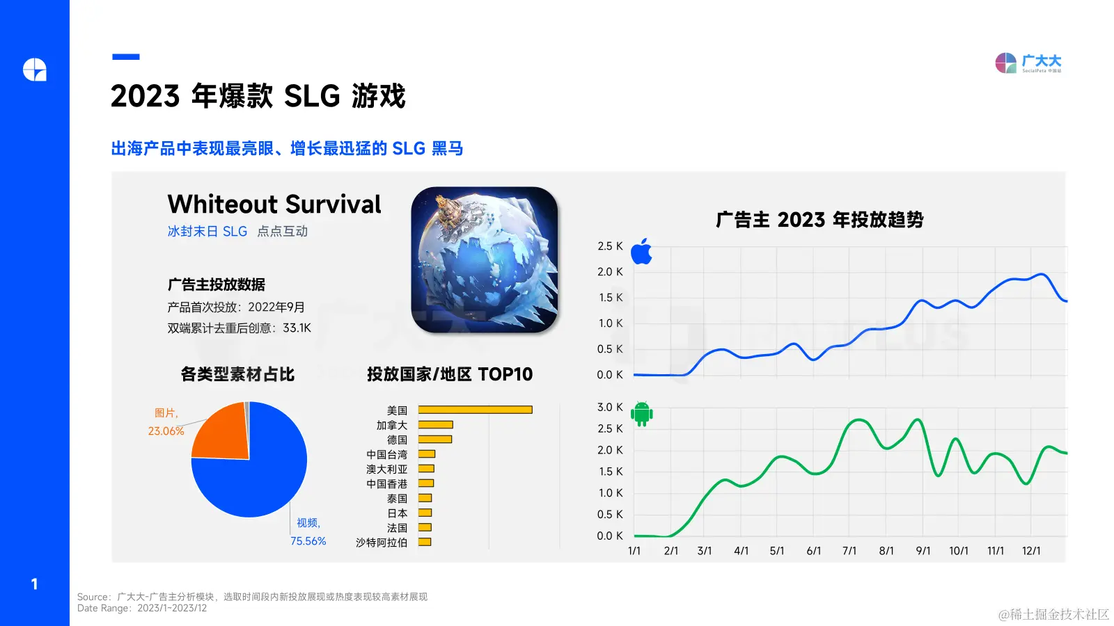 广大大联合TradPlus发布最新2023年手游营销白皮书,内含2023年全球手游TOP产品及手游投放买量大盘趋势,无需注册文中直接领取2023手游投放买量白皮书。