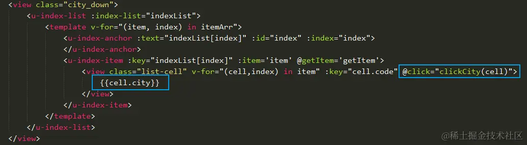 uView的IndexList 索引列表 LD2721 2024-01-11 1,074 阅读1分钟 注:仅作个人记录 用途:城市列表展示 问题:点击每个城市,拿不到点击事件的内容(只能拿到索引) 需求:拿到点击的城市名 1、点击每个城市名时,打印会报错: 2、报错信息: 3、解决: 在 uni_modules 文件下 uview-ui => components => u-index-item 文件下 在 props.js 中 , 在 u-index-item.vue 中,添加个点击事件,看一下打印结果 抛出: 到所需要用的页面,拿到数据进行处理就可以得到点击的城市名