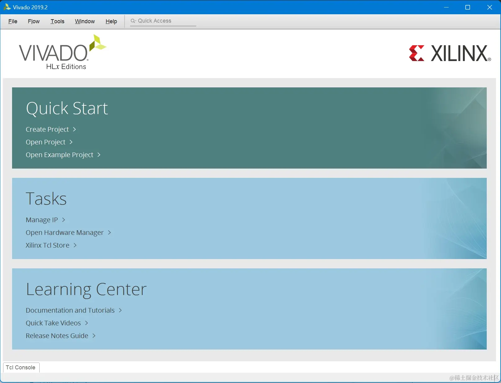 - 双击桌面 Vivado 2019.2 快捷方式,打开 Vivado,安装结束: