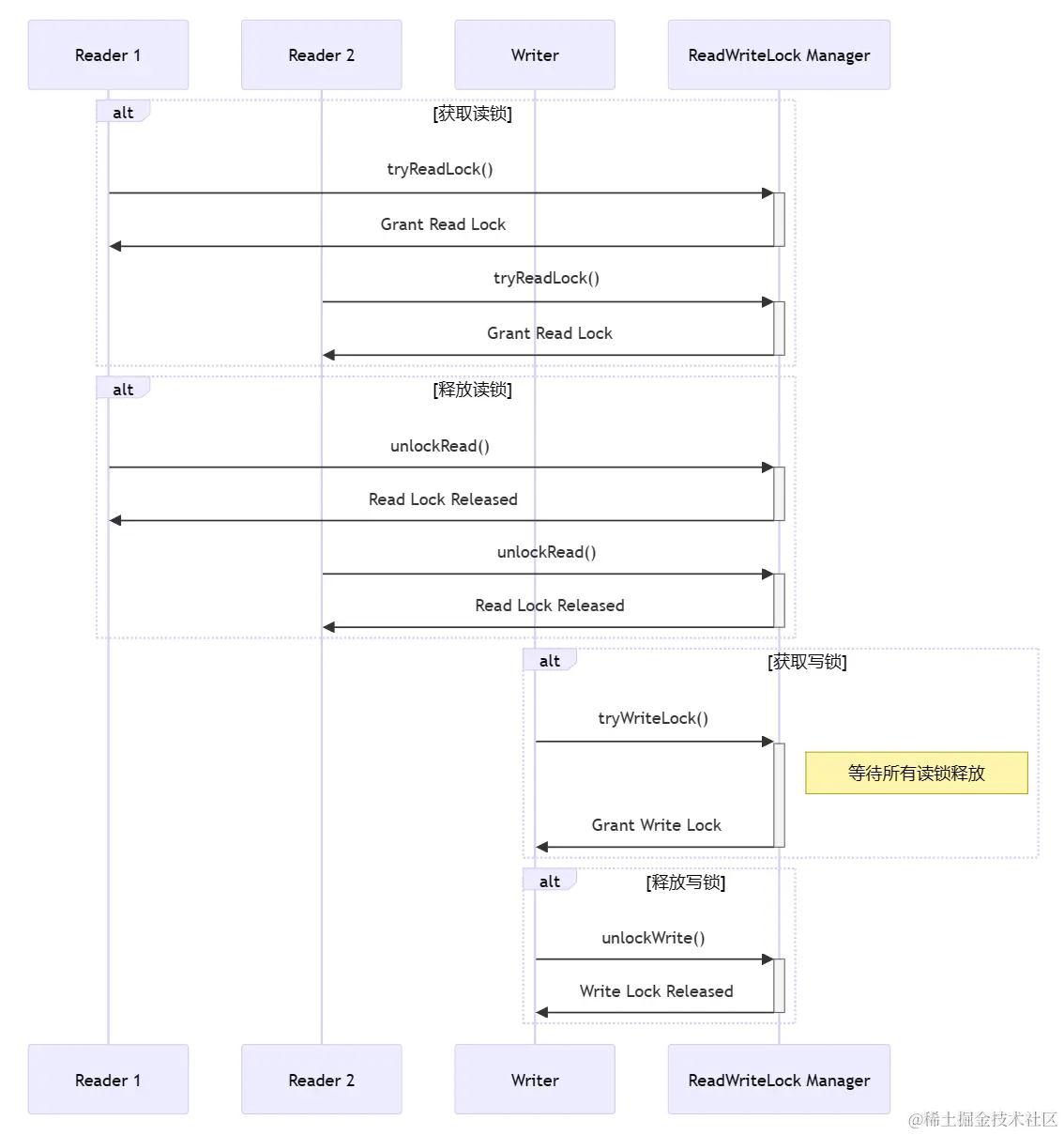 ReadWriteLock,顾名思义,分为读锁(Read Lock)和写锁(Write Lock)。读锁是共享的,多个线程可以同时持有读锁,这就像是多人同时看同一本书。而写锁则是独占的,一旦一个线程获取了写锁,其他线程就只能乖乖等它写完,就像只有一个人能写日记,其他人等着。