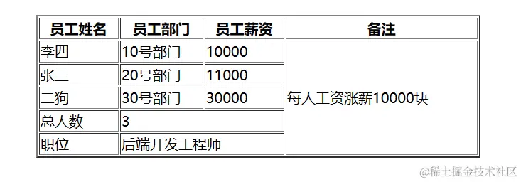 让一格向右多占几列也是同理,使用属性colspan = “所占的列数”