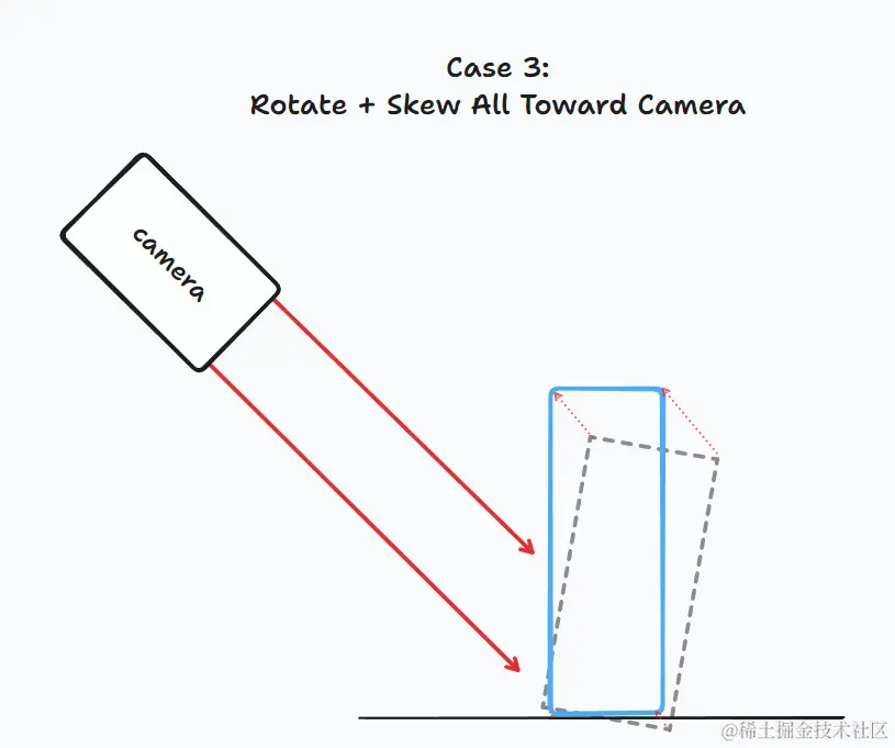 我提出的一个可能的解决方案是将模型从摄像机那里倾斜开来,然后将顶部向摄像机倾斜,直到它再次变直,这样对于正交相机而言,会产生完全相同的投影几何。