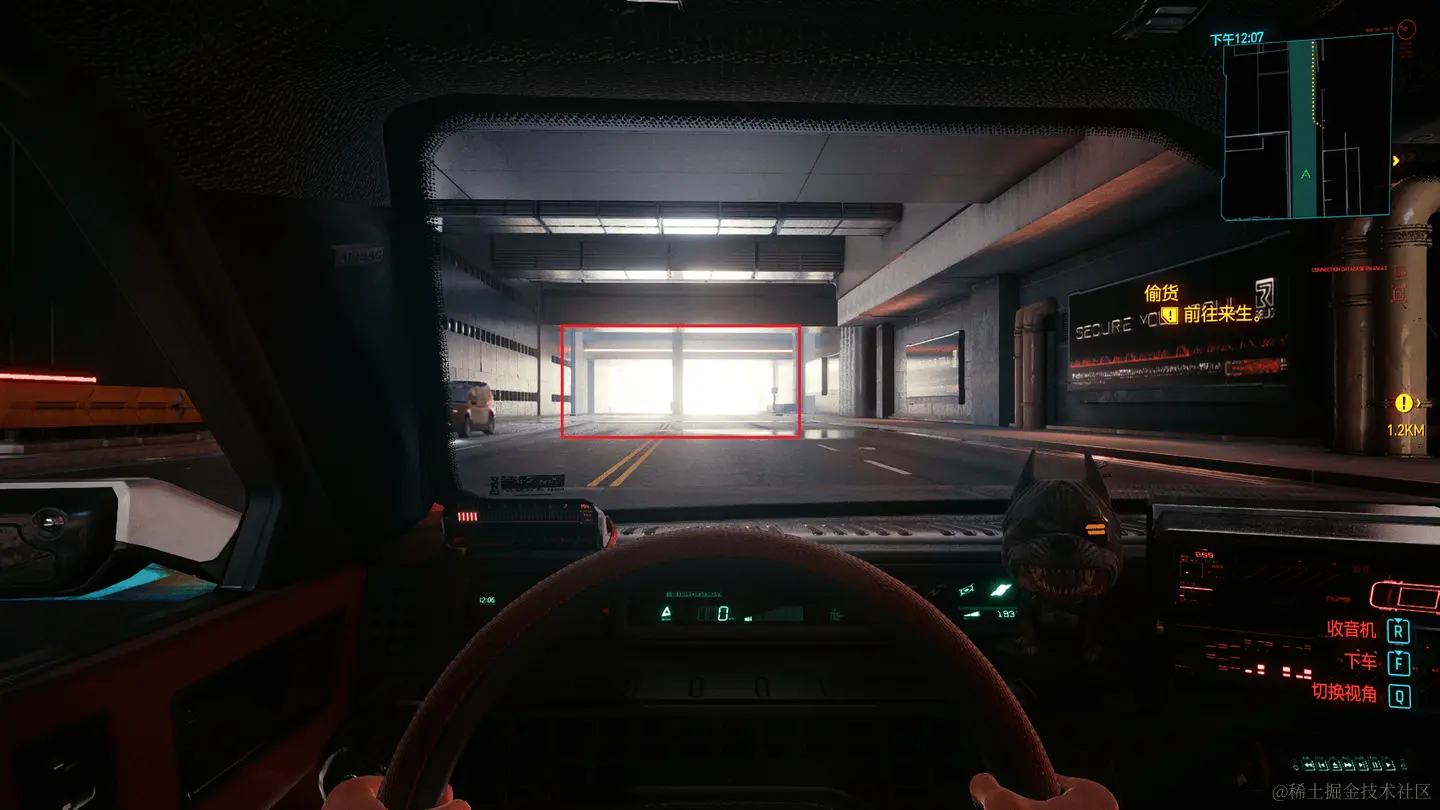 不过当画面的动态范围进一步增加的时候,Global Tonemapping开始不那么完美了,有些过亮或过暗的区域会开始丢失细节,个人在玩《赛博朋克2077》的时候就发现有部分丢细节的现象,特别是人坐在车内逛街的时候: