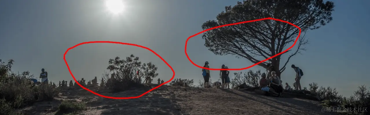 注意图中圈出来的红色区域,已经完全看不出细节了,在现实生活中肯定不是这样的。