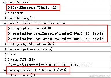 - Local Exposure - Blurred Luminanc,包含降采样和Two Pass Gaussian Blur,为了解决前面提到的Ringing Artifact问题。