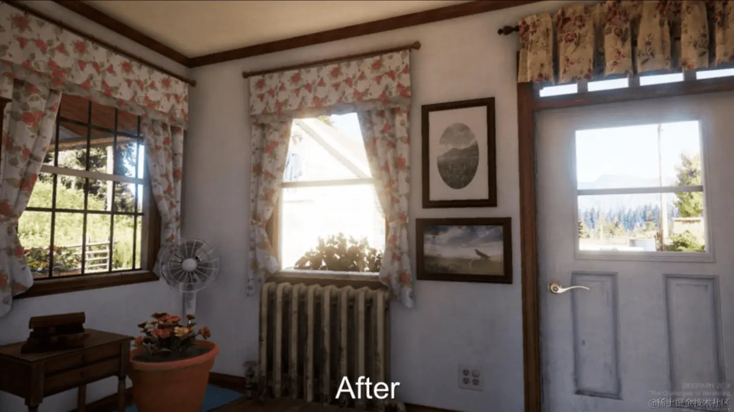 但在游戏中这些前期调节手段并不好用。因为游戏输出的画面是动态的,输出什么内容和玩家控制的角色看到什么有关,也和当前灯光环境有关(比如昼夜流逝、天气变化等)。若以“Hack the light”为例,通常在某时刻某位置补光,在光照环境变化时就会露馅,而管理一大堆变化的Hack light会把项目变成灾难。