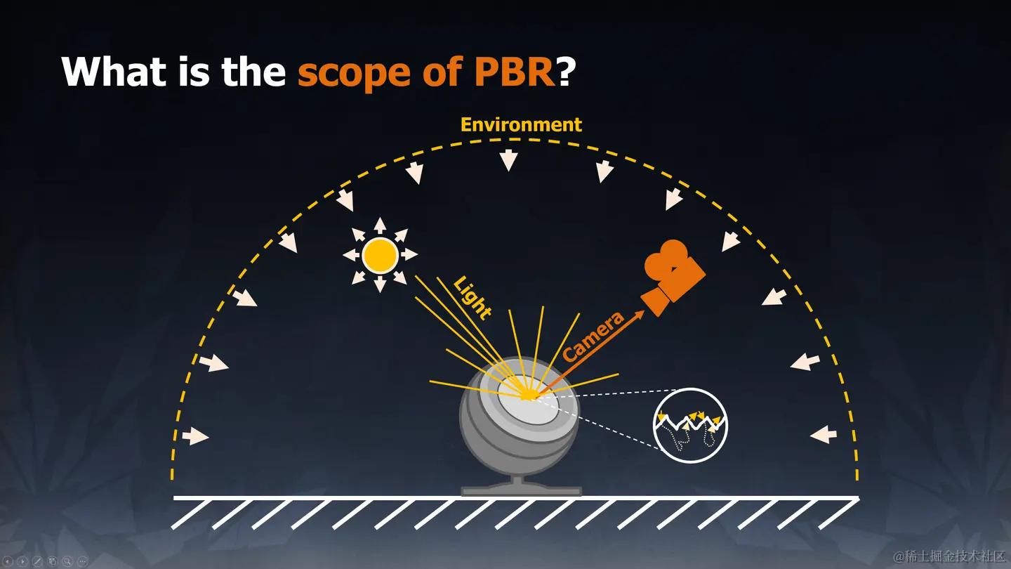 Physically Based Rendering(PBR)中,过去讨论得最多的是PBR Material。但随着时间的推移,当前讨论“PBR”已经不仅局限于Material,而是Material、Lighting、Camera的结合,即对应的是:材质如何物理地表现、光照如何物理地模拟、以及图像如何物理地生成的问题。