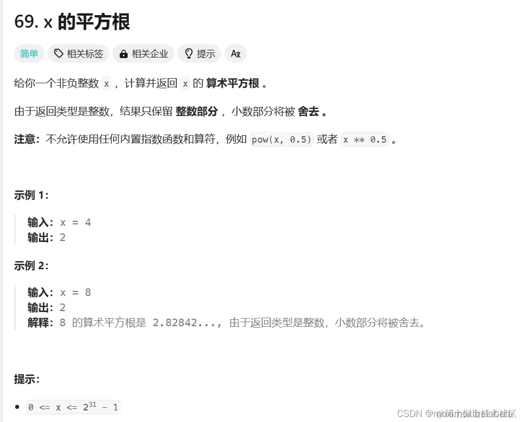 69. x 的平方根 https://leetcode.cn/problems/sqrtx/