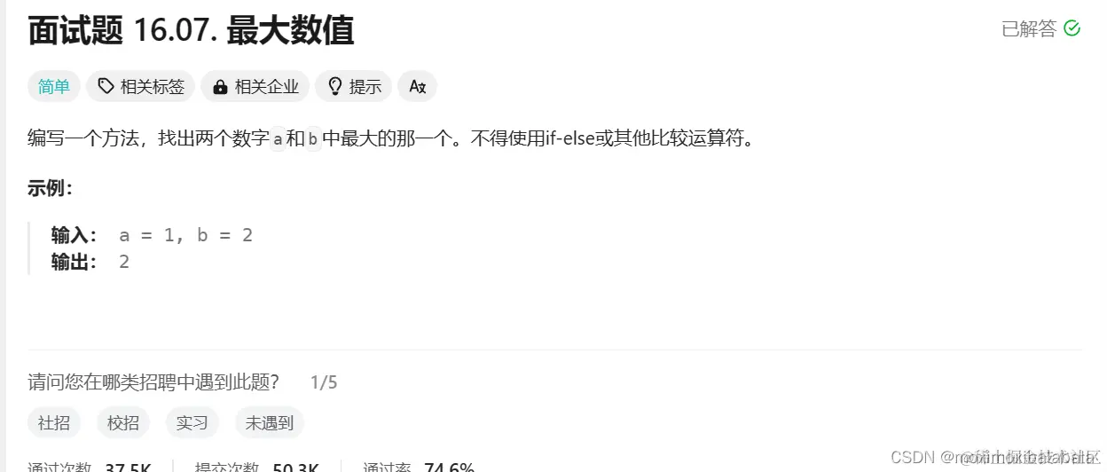 面试题 16.07. 最大数值https://leetcode.cn/problems/maximum-lcci/