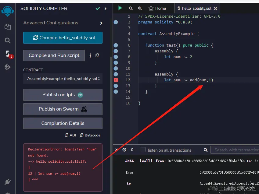 正如上面的例子那样,汇编代码运行在assembly{...}汇编块中的。而汇编代码是使用YUL语言来编写的!内联汇编块不共享命名空间,即不能在一个汇编块调用另一个汇编块中定义的变量。