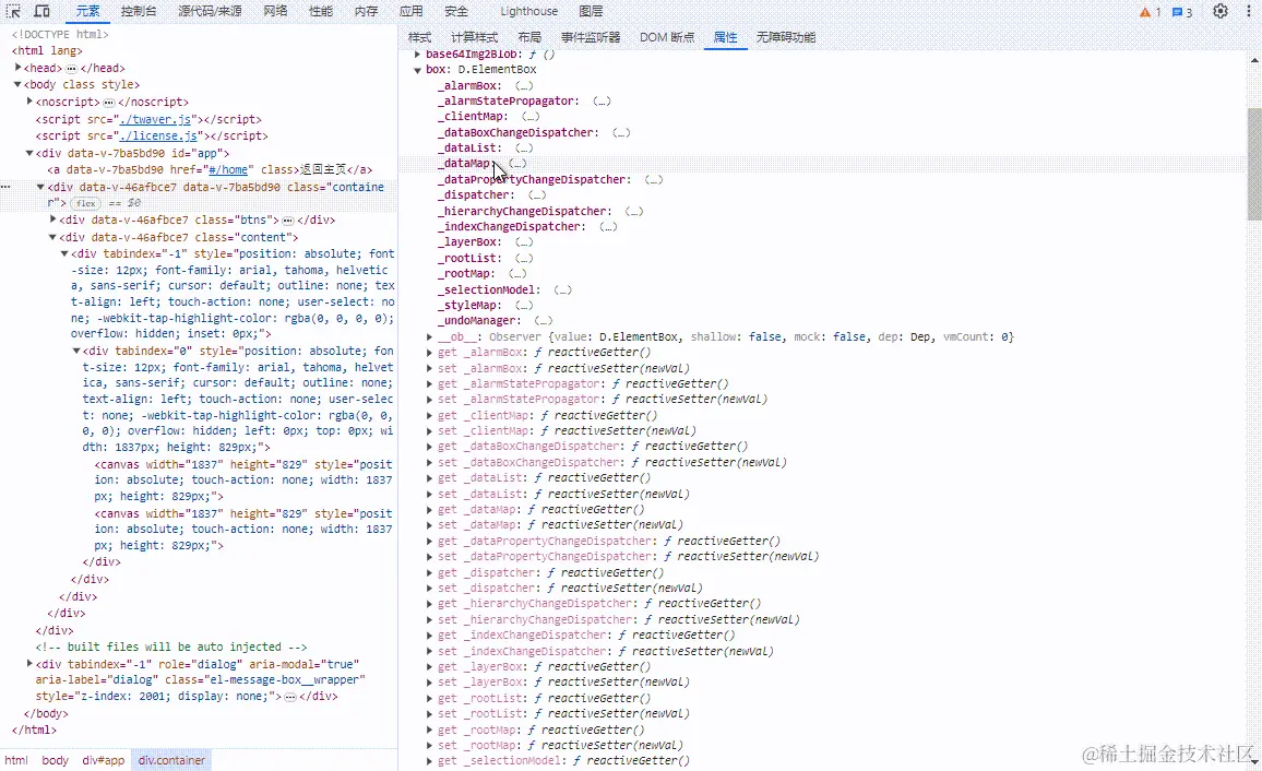 看到没有,twaver 的两个变量 box 和 network,内部结构非常复杂,N 多的内嵌对象,全部都被响应式处理,这占用的资源是非常恐怖的