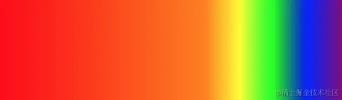 用图片来解释就容易多了。下面的代码片段与上面的彩虹代码相同,但颜色的终止点被压缩到了右侧。