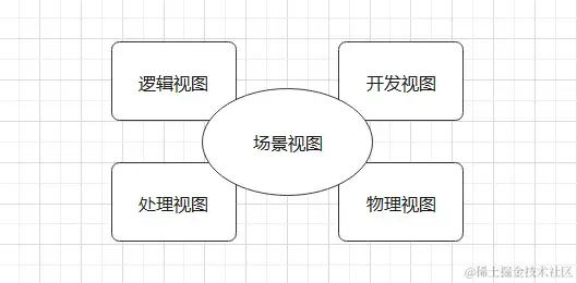 “4+1视图”,分别为场景视图、逻辑视图、物理视图、处理流程视图和开发视图。