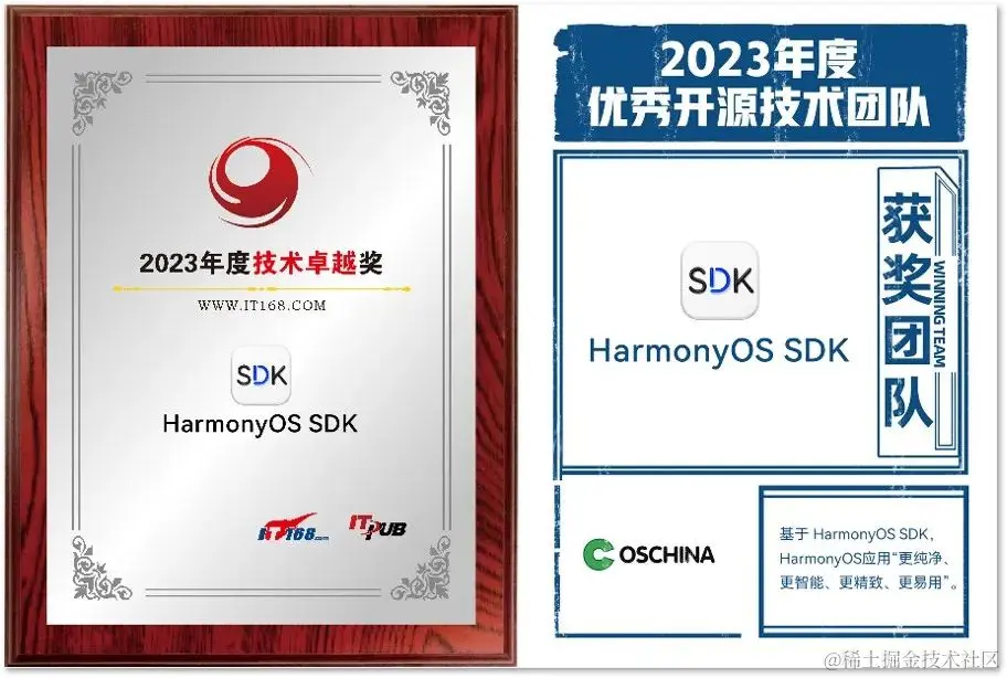 通过在开发者社区和HarmonyOS开发者持续的内容共创与技术交流互动,HarmonyOS SDK获得OSCHINA、ITPUB两大国内开发者社区颁发的2023年度"技术卓越"奖项。通过关键能力底层化,通用能力全局化,HarmonyOS SDK提供了应用框架、应用服务、系统、媒体、AI、图形六大领域、80多个Kit丰富完备的开放能力,并将高频开发场景整合成场景化控件,使能开发者高效构建焕然一新的HarmonyOS应用。目前,已有大量应用已经陆续开展和HarmonyOS SDK的合作,为HarmonyOS用户带来更简单易用、高端精致的使用体验。也欢迎更多的开发者加入,共享新技术,共创新体验。
