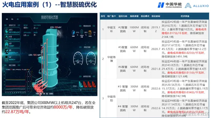 首先是介绍一个关于智慧脱硫优化的案例,在火电厂像锅炉燃烧、检修,规范业务流程已经非常规范。能做到更精益的管理提升到底在哪儿?其实我们发现,比如说脱硫优化,传统的火电厂是三班一倒,员工值班8个小时后特别到晚上1点钟后上班的时候会特别困。而脱硫是一个特别慢的化学反应,需要投放定量的氧化钙等着二氧化硫慢慢的过来进行中和反应,数量不太可控会浪费了好多氧化钙的资源。