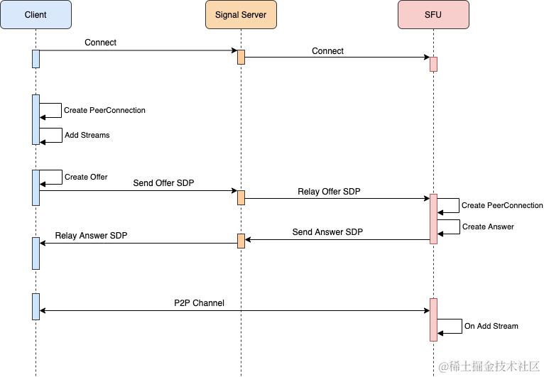 Client与SFU建立信令连接;