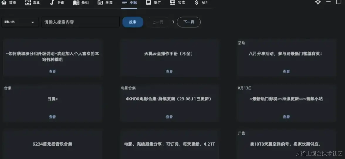 小站支持更多种类资源的获取(影视、教程、游戏等),普通用户支持从天翼小站获取资源,VIP同时支持从阿里小站获取资源,还支持获取在线影视资源。