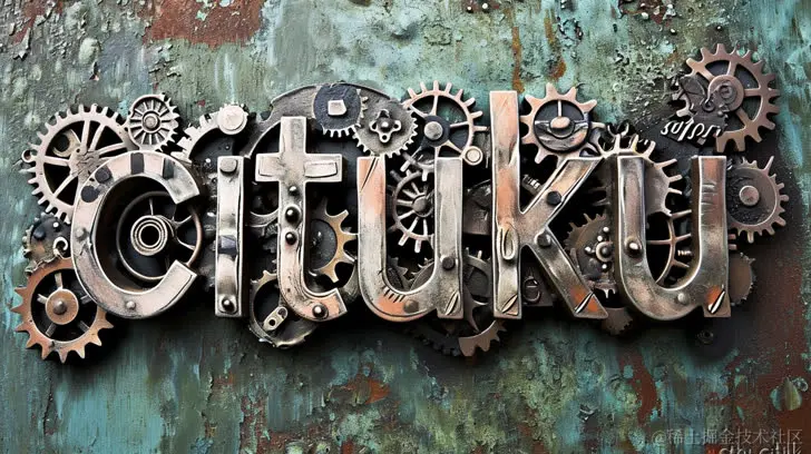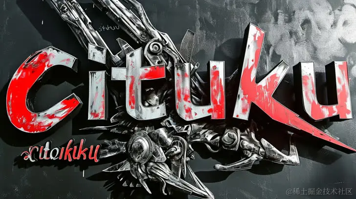 以钢铁齿轮构成的cituku字母,风格融合了陶艺叙事者、Craola、Buckminster Fuller、Greg Rucka的元素,以及网站设计、爆炸性色素、垃圾核心。