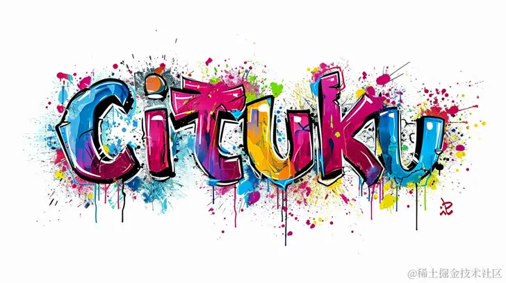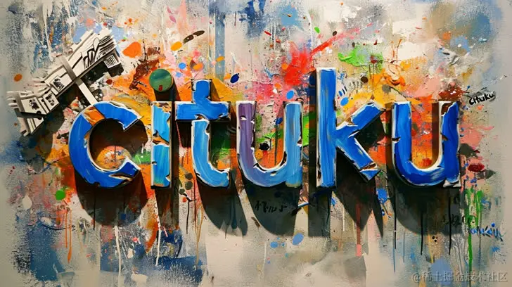 用不同颜色绘制的cituku字母,风格融合了丰富质感的画布、逼真雕塑、撕裂的、破损的边缘、超现实的细节,灵感来自野兽派、基于网络的艺术、移轴摄影。