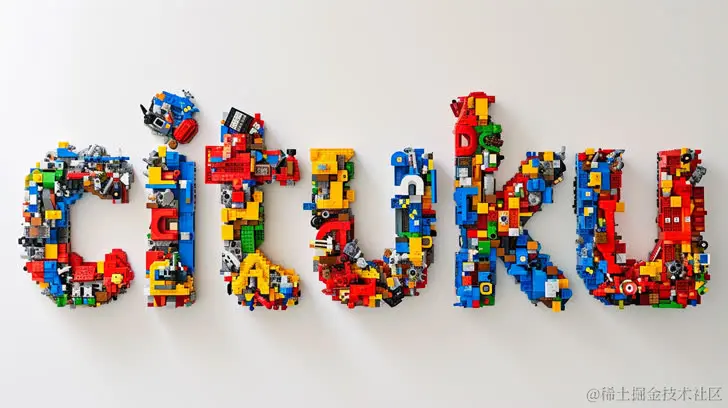 用乐高积木拼成的cituku字母,风格融合了大胆而图形化的街头艺术、丰富多彩的组合、藻类朋克、社交媒体艺术、机械雕塑、反杂乱、极简设计、自毁艺术。