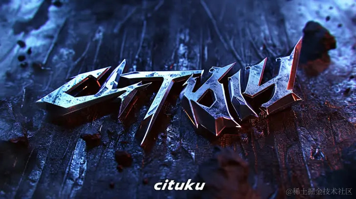 黑色背景上的cituku字母,风格融合了Matthias Haker、Ian McQue、Sparklecore的元素,采用模块化构造、32K超高清、Saurabh Jethani、3D技术。