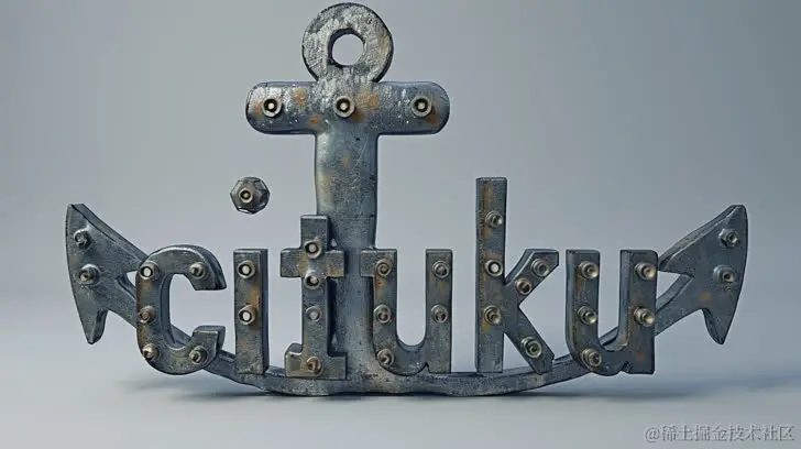 an industrial word cituku with an anchor and screws at the top, in the style of mike campau, aluminum