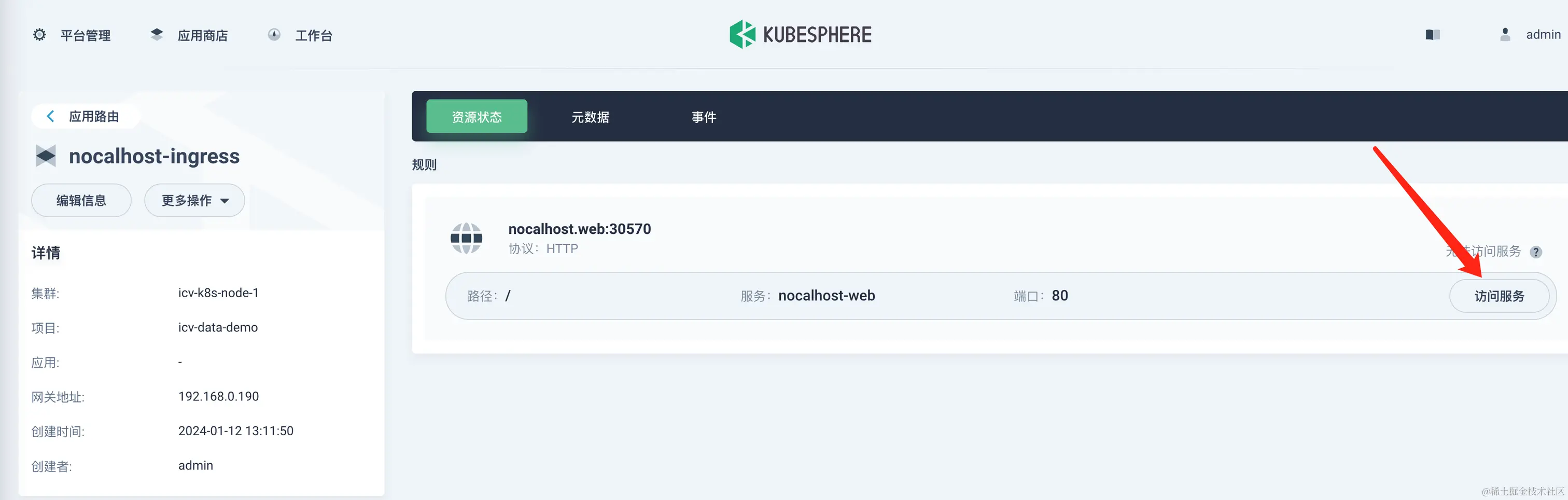 完成 Kubesphere 中快速部署 Nocalhost Server。