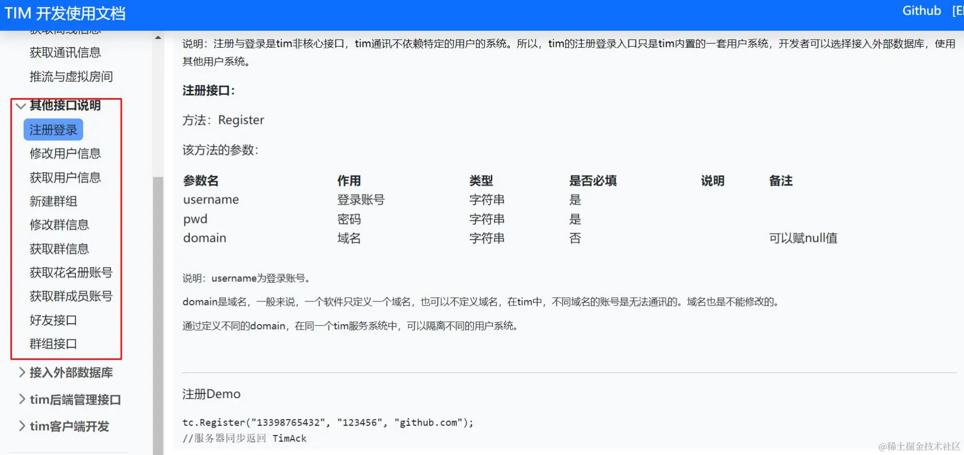 tim主要实现了通讯的核心功能,与数据通讯相关的接口或功能是tim的核心功能。与通讯没有执行关系的功能,如注册,加好友,建群等这些功能接口,是tim内置的业务接口,开发者可以选择用,也可以选择不用,选择不用时,可以配置非tldb的其他数据库,如mysql,Oracle等,通过配置sql支持tim核心接口的查询数据,保存数据等功能,类似注册,好友,群等功能可以自行实现,tim不会受影响。