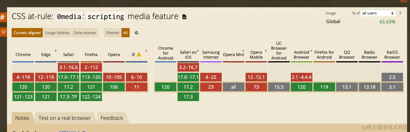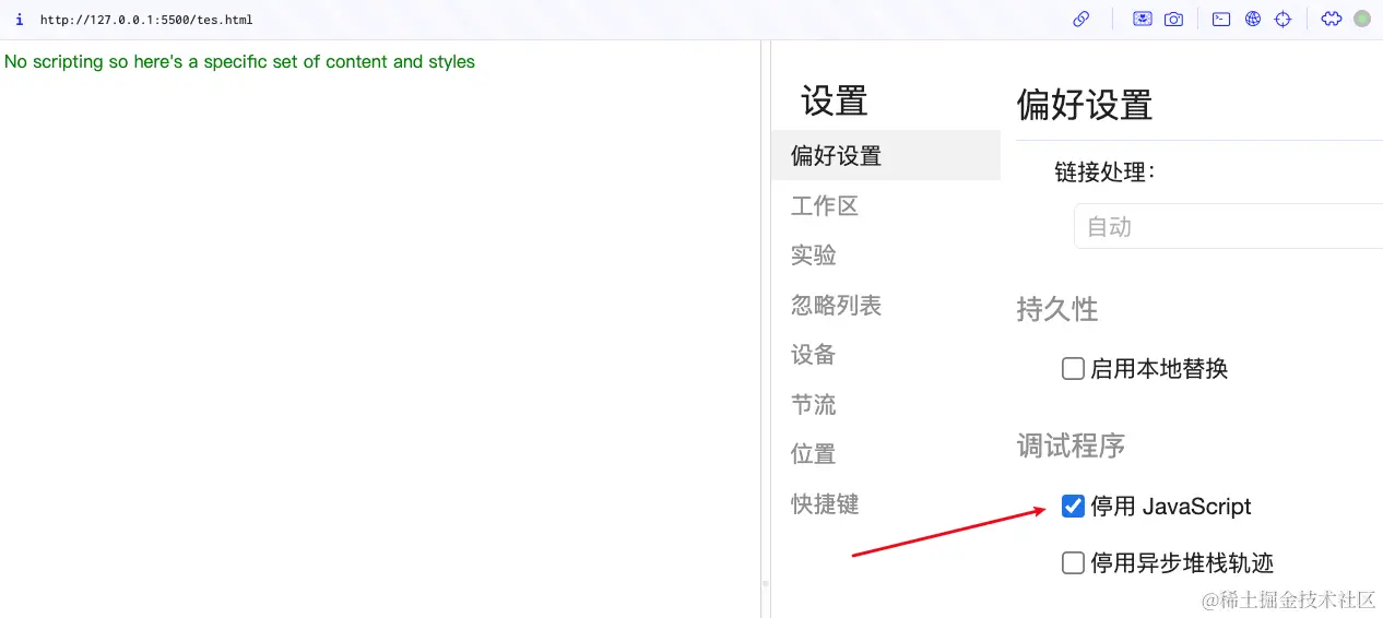 可以通过 scripting: none 检测网页是否支持脚本加载。