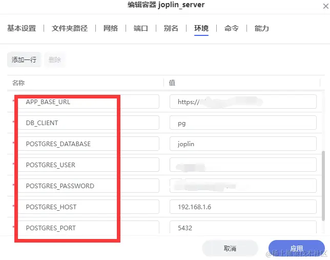- 注意先提前在Pg中创建好名称为joplin的数据库,或者任意名称均可,只要和环境变量重设置的