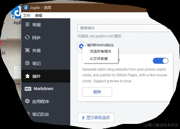 joplin也提供了很多插件,在github上可以看到,插件的安装方式也很简单。