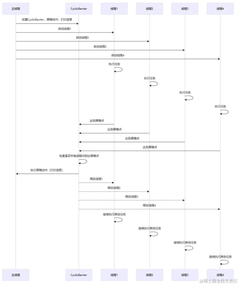 barrier = new CyclicBarrier(4, () -> System.out.println("新的屏障点动作执行"));