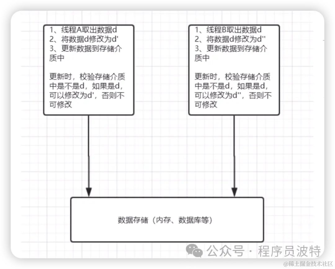 - 执行update操作时,用步骤1检索出的版本号或者最后更新时间与数据库中的记录作比较;