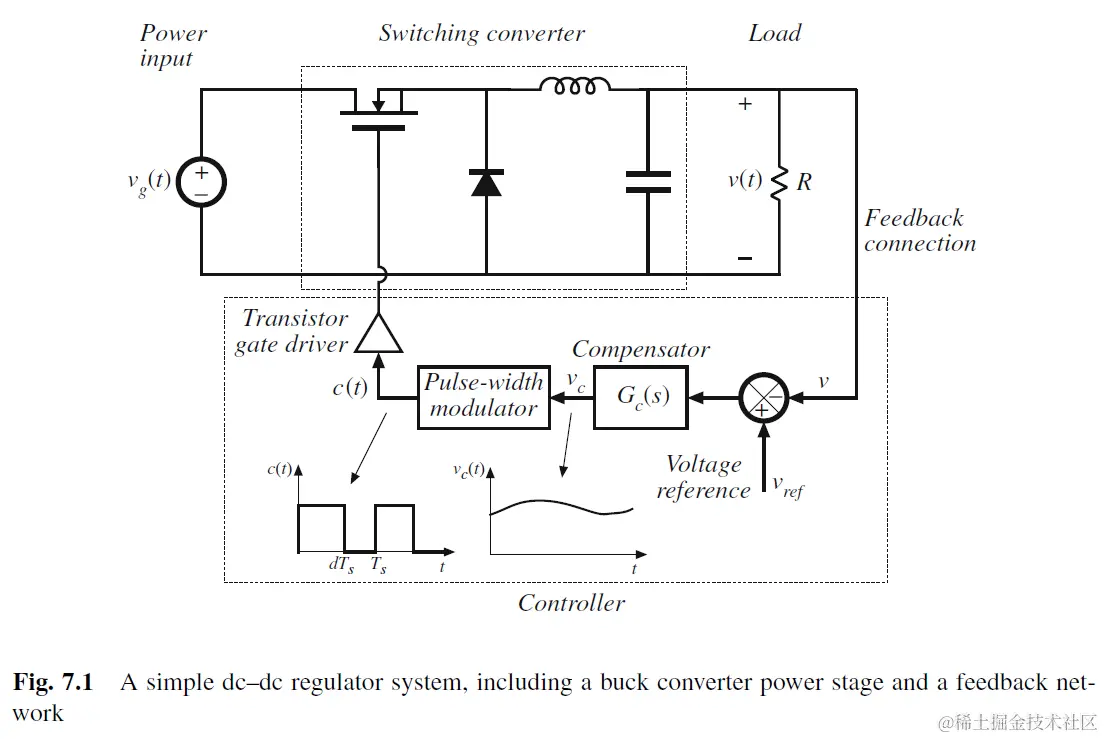 一个典型的dc-dc buck converter带负反馈环路结构如下图所示