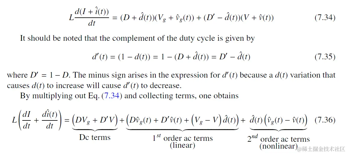 这里的Vg(t), i(t), v(t)都是average之后的量, 由DC大信号加上AC小信号