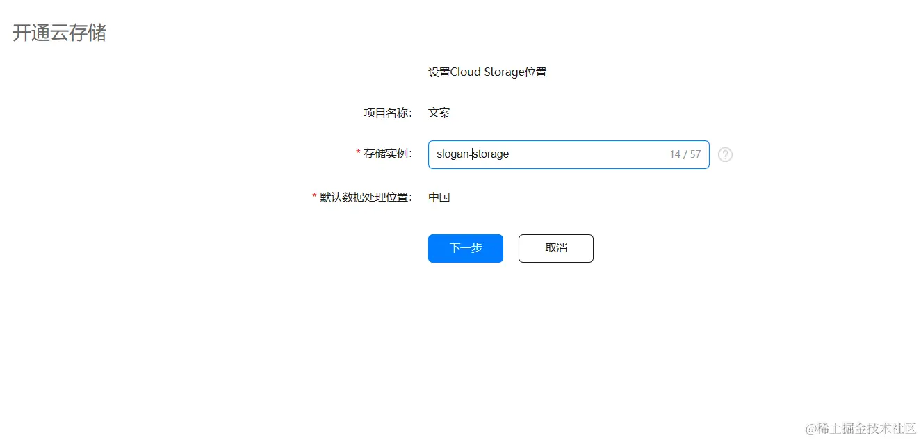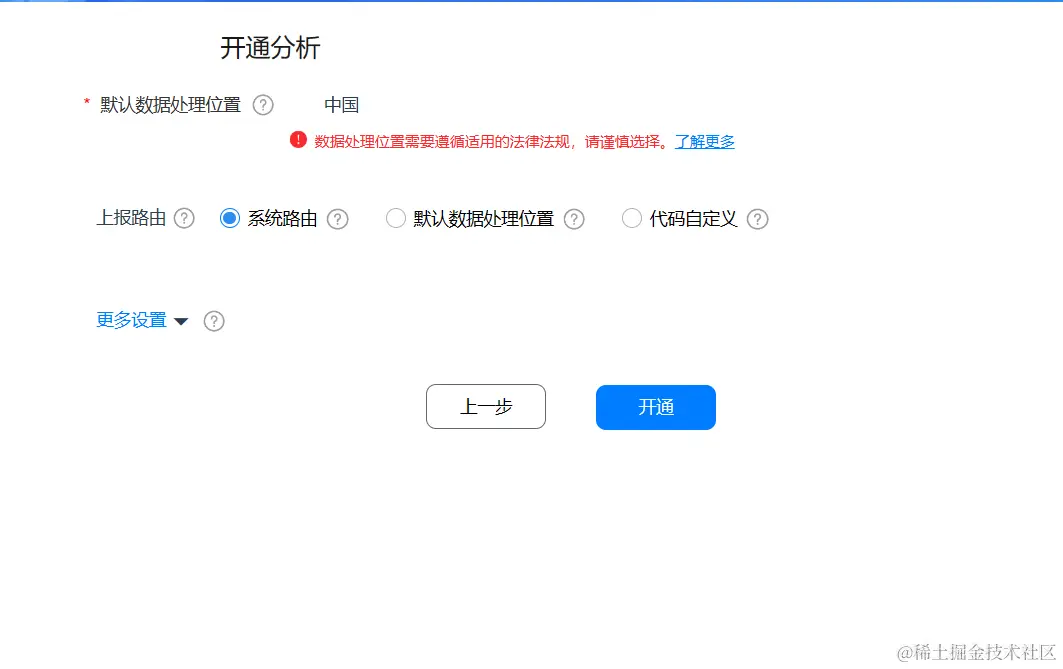 - 如果上一步选了开通分析服务,此时需要选择默认数据处理位置,如果不考虑海外用户的话,直接选中国就可以了。